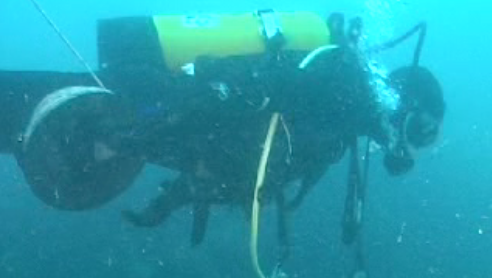 Surnommée "le raplapla" cette épave fortement détruite et n'affleurant qu'à peine du fond n'est pas facile à localisée.