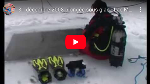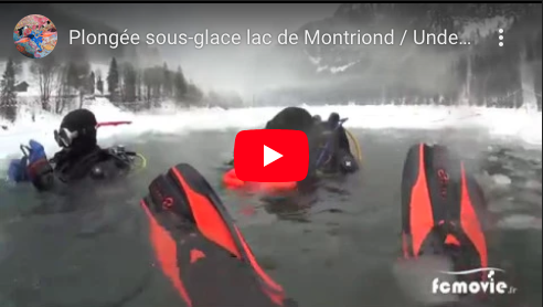 Plongée sous la glace du lac Montriond avec Aquaventure. Pour cette deuxième plongée, la visibilité était très réduite à cause des fortes précipitations tombées les jours précédents. |
