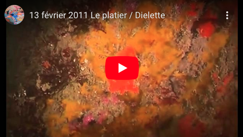 A quelques mètres prêts nous aurions pu filmer l’épave du Saint Hubert. Nous avons tout de même profité de ce fond formé de petites barres rocheuses colonisées par de nombreuses éponges, gorgones et autres espèces filtreuses. |