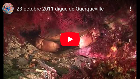 Le courant de marée nous oblige à plonger à l'aplomb de la digue de Querqueville côté extérieur rade. Une plongée avec Joël. Température de l'eau : 11°C