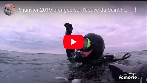 Pour cette première plongée de l'année 2019, l'ASAM 3 nous dépose sur l'épave du Saint Hubert. Après 22 minutes passé au fond à chercher l'épave nous découvrons une ancre indiquant que l'épave se trouve à proximité. Etant donnée la température de l'eau (10°C), la plongée ne peut guère durer plus de 30 minutes (Philippe mon coéquipier plonge en combinaison humide) nous ne passons donc que quelques minutes sur les structures métalliques de cette épave fortement dégradée.