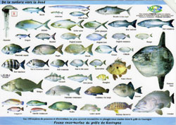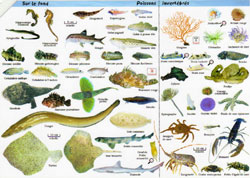 Au verso, les espèces vivant à proximité ou sur le fond.